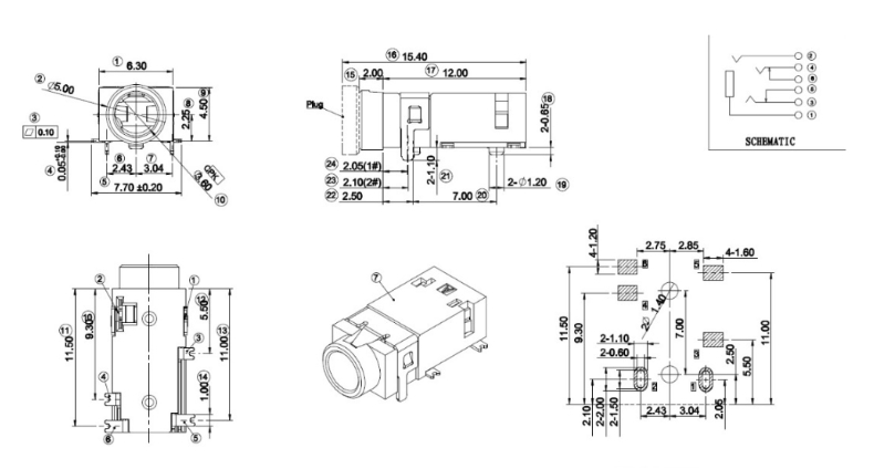 六腳鍍金貼片DC插座廠家批發價格:0.45~0.75元/個;