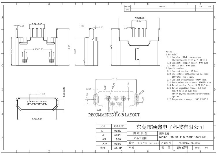 當前位置:撥動開關 >> 開關產品 >> USB插座 >> 直插180度插板Micro 5P母座