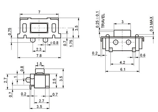 當前位置:撥動開關 >> 舊版產品 >> 輕觸開關 >> 貼片輕觸開關TD-02XA