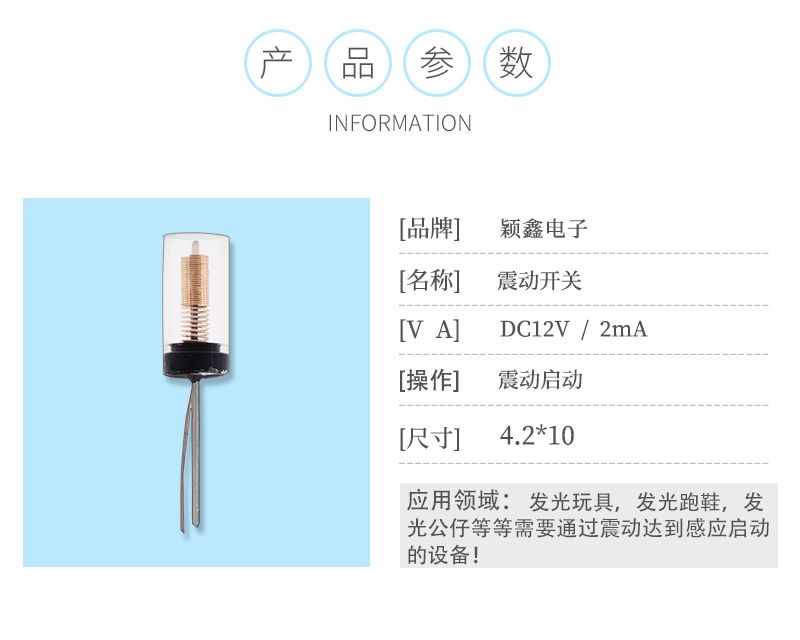 產品簡介:SW-18015震動開關,正確的名稱應該稱為震動傳感器,也就是在感應震動力大小將感應結果傳遞到電路裝置,并使電路啟動工作的電子開關。