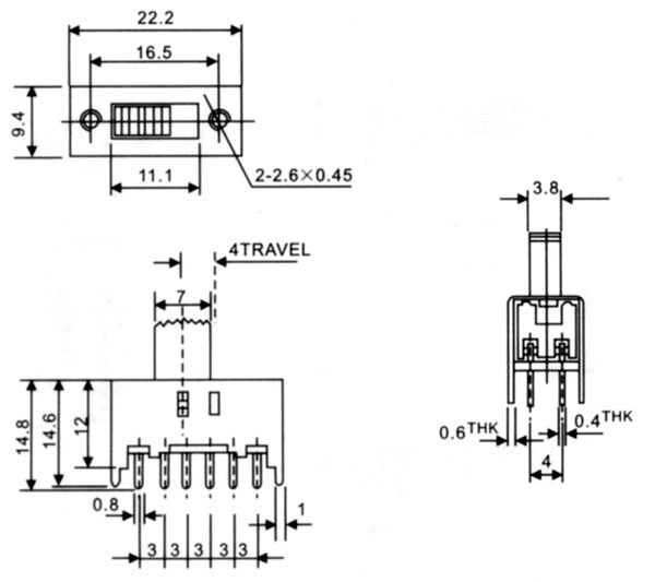 2.開關不常切換的額定電流:最大400mA