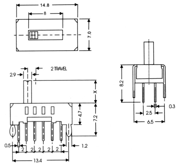 當前位置:撥動開關 >> 舊版產品 >> 豎柄撥動開關 >> 撥動開關SS-24D02