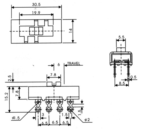 當前位置:撥動開關 >> 舊版產品 >> 豎柄撥動開關 >> 撥動開關SS-23L02