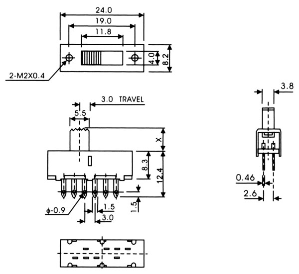 2.開關不常切換的額定電流:最大400mA