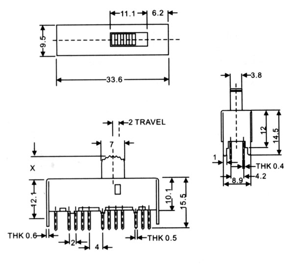 當前位置:撥動開關 >> 舊版產品 >> 豎柄撥動開關 >> 撥動開關SS-63D05