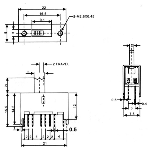 當前位置:撥動開關 >> 舊版產品 >> 豎柄撥動開關 >> 撥動開關SS-43D04